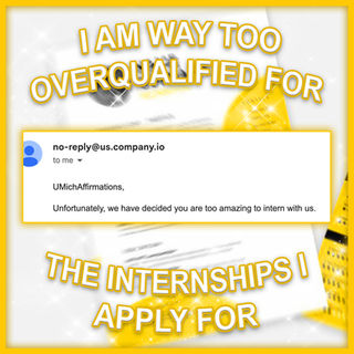 UMichAffirmations is a student-run humorous Instagram account that shares relatable college-life content centered around University of Michigan–Ann Arbor. Inspired by the popular trend of manifestation and affirmations, the account aims to unite the UMich student community, one meme at a time, to an audience of over 14,500 followers.
